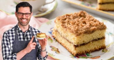 Simple and classic, this buttery cinnamon crumb coffee cake is anything but plain! Sour cream ensures a moist, light (not overly …